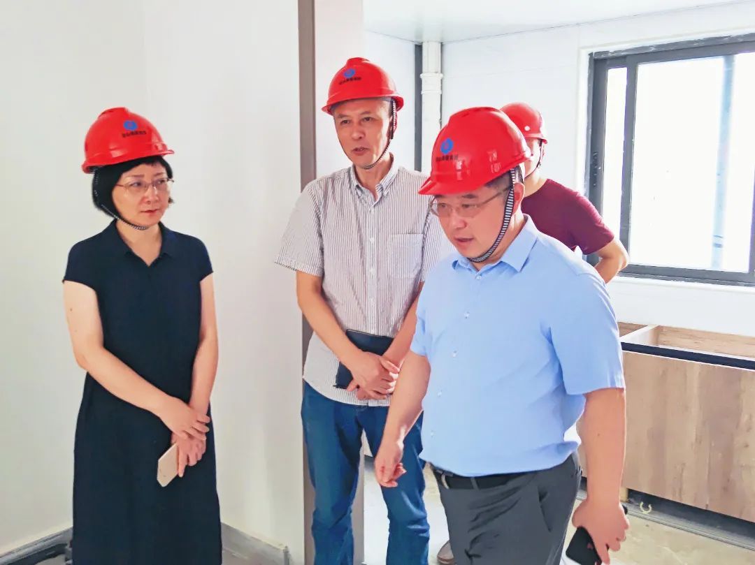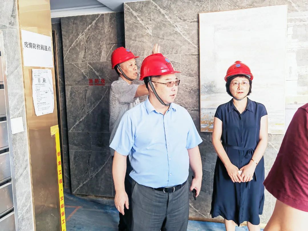 ▲党委副书记、纪委书记、工会主席顾文涛,财务总监孙志峰检查金品嘉园共有产权房项目。
