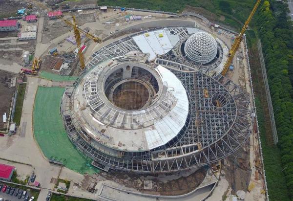 今天中午,随着桁架间补缺杆安装及焊接工作完成,上海天文馆(上海科技馆分馆)用钢量达2000多吨的大悬挑结构完成了整体卸载施工。这标志着上海天文馆所有主体钢结构工程顺利收尾,主体结构施工取得阶段性胜利。在上海临港新城建造的上海天文馆是全球建筑面积最大的天文馆,有望2020年底基本完成建设。