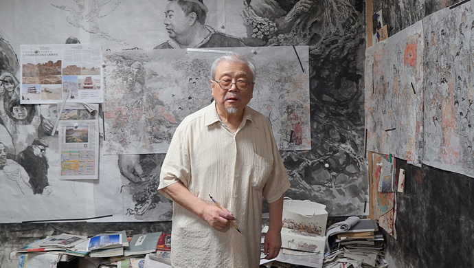 戴敦邦:2011年,我右眼失明了。对于视画画为生命的人而言,少了一只眼睛,等于是要了我的命啊。我有过短暂的失落,但失落过后,我开始创作大画,画老子的《道德经》。从2011年至今,画了将近8年,劳动量相当之大。而据专业人员告知,我另一只好的眼睛,保守估计可能仅能维持12年,对我而言,剩下的4年时间弥足珍贵。而4年后,我将年届86岁,那时,我不能保证自己还能不能保持现在这样的创作状态,所以我现在开始必须分秒必争,和时间赛跑。