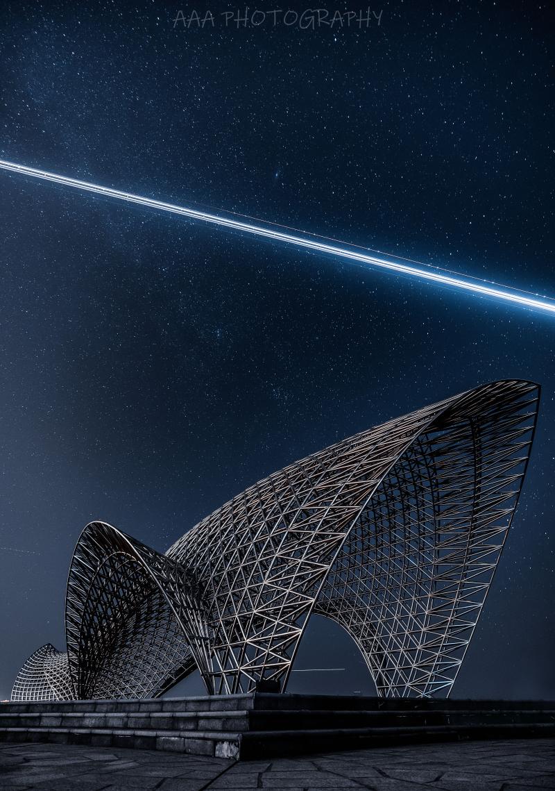 摄于南汇嘴观海公园,天空中银河肉眼可见。 胡幸阳 摄