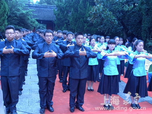 日前,由上海孔子文化节组委会、区精神文明建设委员会办公室、嘉定州桥旅游文化发展有限公司和中光高级中学等单位共同主办的中学生成人礼示范仪式在嘉定孔庙举行,中光高级中学223名学生作为全区代表,在家长和老师的见证下开启了人生的新征程。