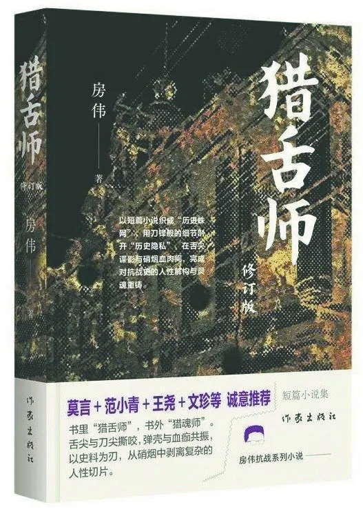 “如何在精短篇幅中,快速进入抗战的历史情境,将读者带入感性的历史氛围,展现坚韧抗战与历史思索?”这是房伟在构思抗战小说集《猎舌师》时,常常考虑的问题。他的《猎舌师》犹如一套独特的文学“组合拳”,通过具体历史场景的“横截面”,回望中国全民抗战的历史时刻,以短小篇幅打开宏阔叙述空间,涉及南京、北京、上海、苏州、扬州、济南,沂蒙山、微山湖根据地,还有日本北海道、越南河内等。评论家王尧认为,房伟犹如一位“蜘蛛侠”,将19部作品织成“历史蛛网”,他在现实与魔幻、虚构与经验、风俗与人情之间探寻,这些特色各异的短篇集合体,构成一种长篇效应,又保存着每个短篇的独特视角和思想内涵。
