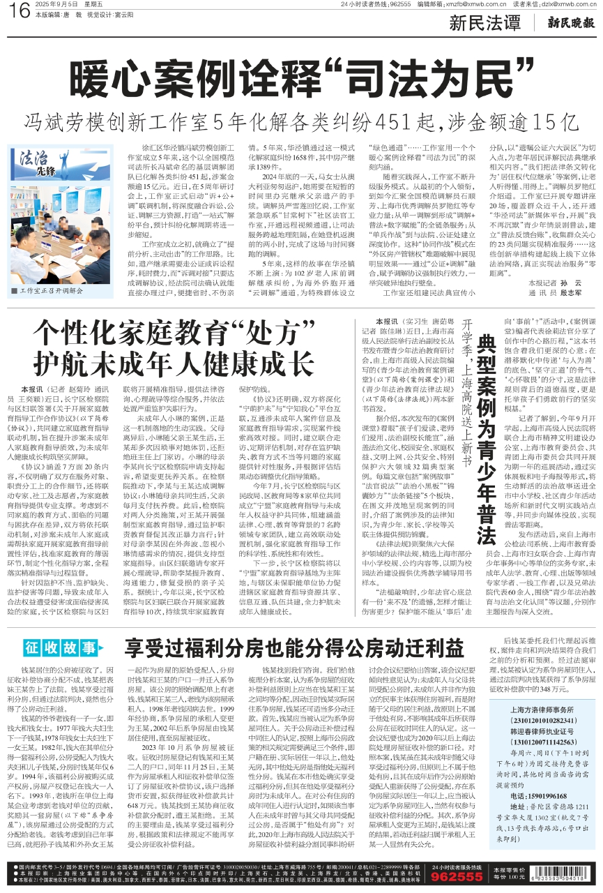 记者了解到,今年9月开学起,上海市高级人民法院将联合上海市精神文明建设办公室、上海市教育委员会、共青团上海市委员会共同开展为期一年的巡展活动,通过实体展板和电子海报等形式,将生动鲜活的法治故事送进全市中小学校、社区青少年活动场所和新时代文明实践站点等,并同步向媒体投放,实现普法零距离。