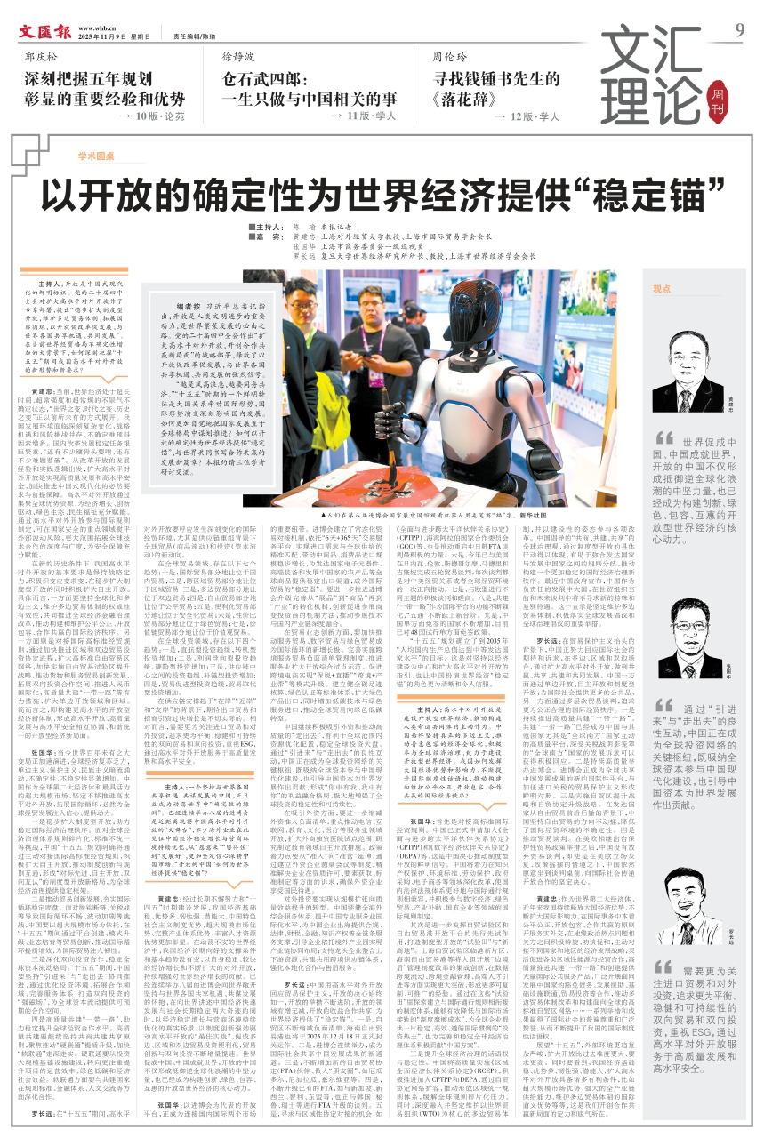 “越是风高浪急,越要同舟共济。”“十五五”时期的一个鲜明特征是大国关系牵动国际形势,国际形势演变深刻影响国内发展。如何更加自觉地把国家发展置于全球格局中谋划推进?如何以开放的确定性为世界经济提供“稳定锚”,与世界共同书写合作共赢的发展新篇章?本报约请三位学者研讨交流。