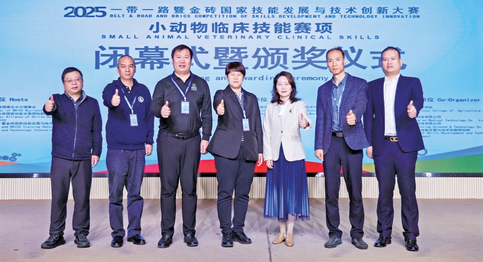 10月31日至11月3日,2025“一带一路”暨金砖国家技能发展与技术创新大赛之小动物临床技能赛项决赛在上海农林职业技术学院举办。大赛由金砖国家工商理事会中方理事会、“一带一路”暨金砖国家技能发展国际联盟、“一带一路”暨金砖国家技能发展与技术创新培训中心主办,中国发明协会、教育部中外人文交流中心联合主办,金砖国家工商理事会技能发展、应用技术与创新中方工作组承办,上海农林职业技术学院、上海诚恩医学科技有限公司、北京嘉克新兴科技有限公司、厦门市金砖未来技能发展与技术创新研究院联合承办。