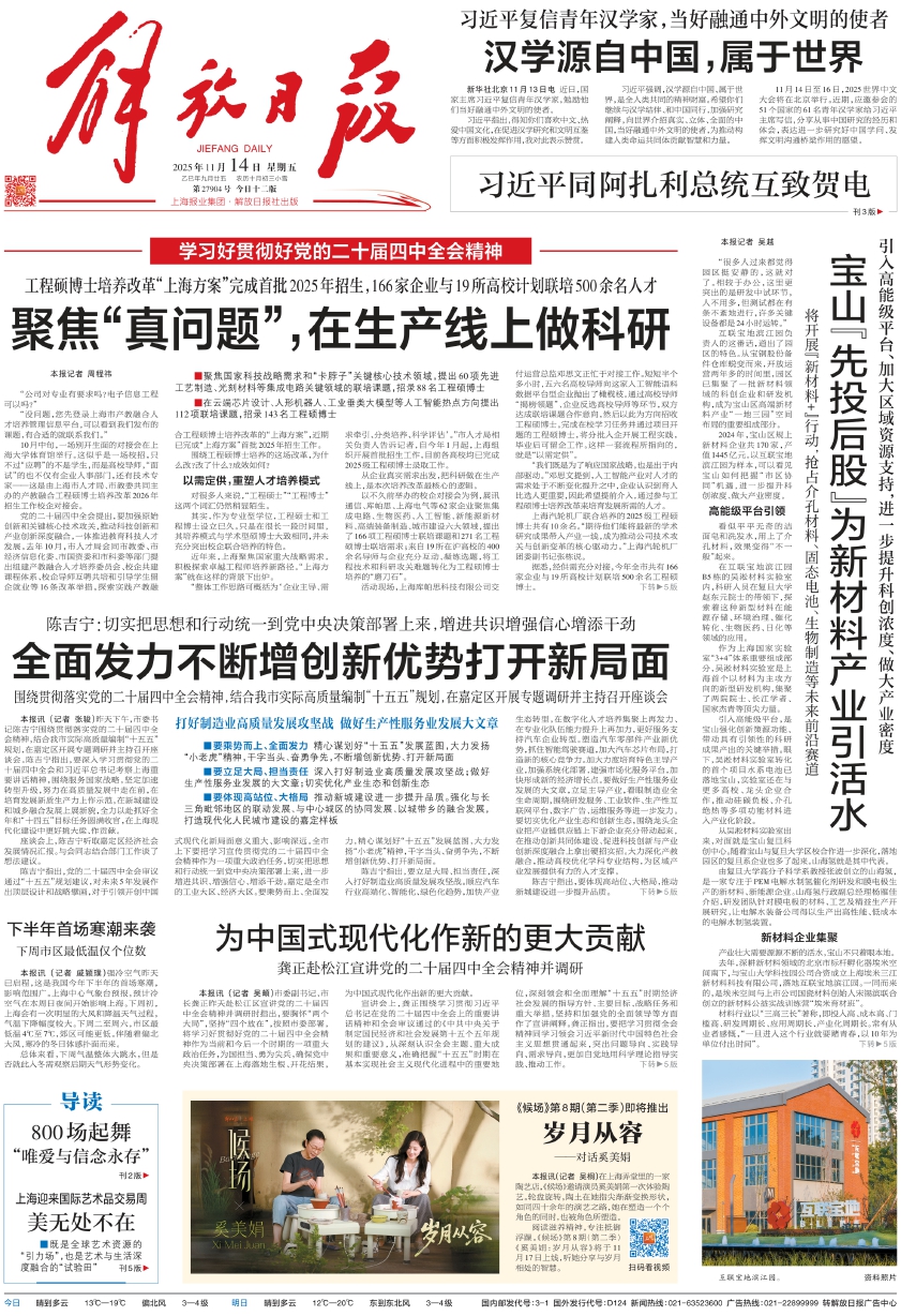 党的二十届四中全会提出,要加强原始创新和关键核心技术攻关,推动科技创新和产业创新深度融合,一体推进教育科技人才发展。去年10月,市人才局会同市教委、市经济信息化委、市国资委和市科委等部门提出组建产教融合人才培养委员会、校企共建课程体系、校企导师互聘共培和引导学生留企就业等16条改革举措,探索实践产教融合工程硕博士培养改革的“上海方案”,近期已完成“上海方案”首批2025年招生工作。