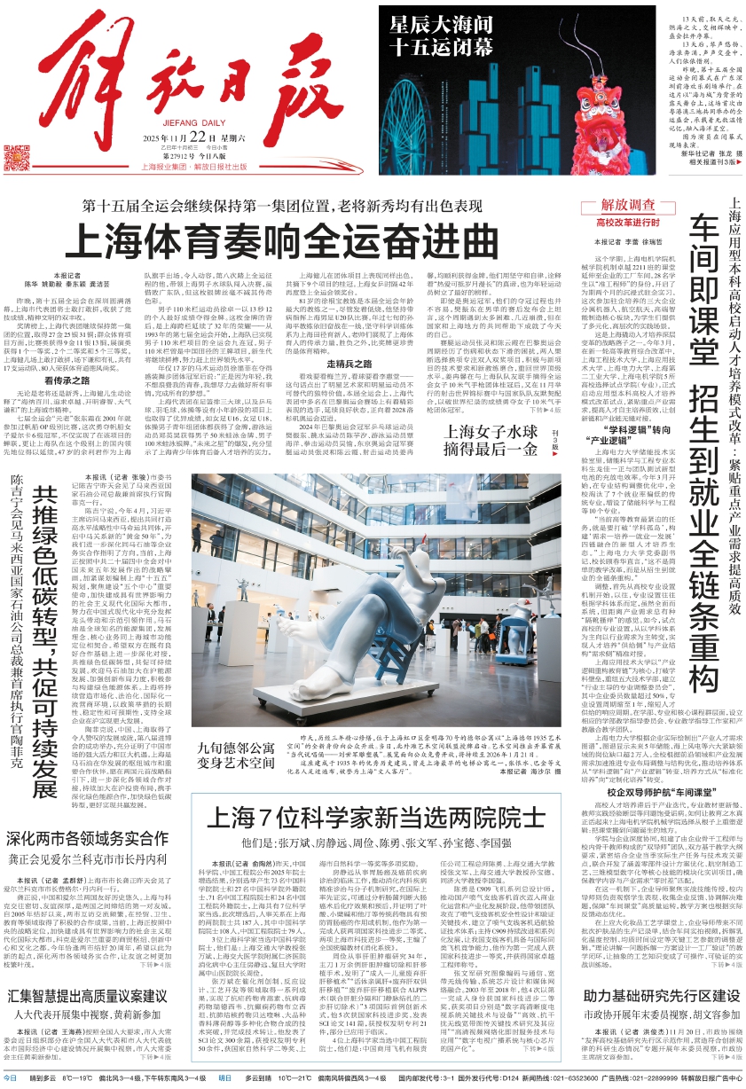 这是上海撬动人才培养深层变革的战略落子之一。今年3月,在新一轮高等教育综合改革中,上海工程技术大学、上海应用技术大学、上海电力大学、上海第二工业大学、上海电机学院5所高校选择试点学院(专业),正式启动应用型本科高校人才培养模式改革试点,紧贴重点产业需求,提高人才自主培养质效,让创新链和产业链无缝对接。