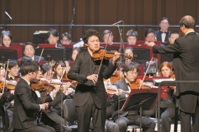 昨晚,章奥哲与上海音乐学院交响乐团演奏帕格尼尼《D大调第一小提琴协奏曲》第一乐章。上海音乐学院供图