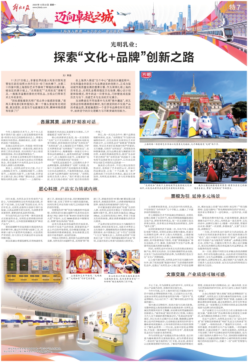在上海深入推进“五个中心”建设的关键进程中,文化所蕴含的软实力与品牌迸发的创新力,正成为驱动城市高质量发展的重要引擎。作为深深扎根上海的百年乳企,光明乳业精准锚定文化场景,精心设计创新体验模式,将牛奶这一日常饮品,巧妙塑造成连接历史与当下、沟通艺术与生活的文化媒介。