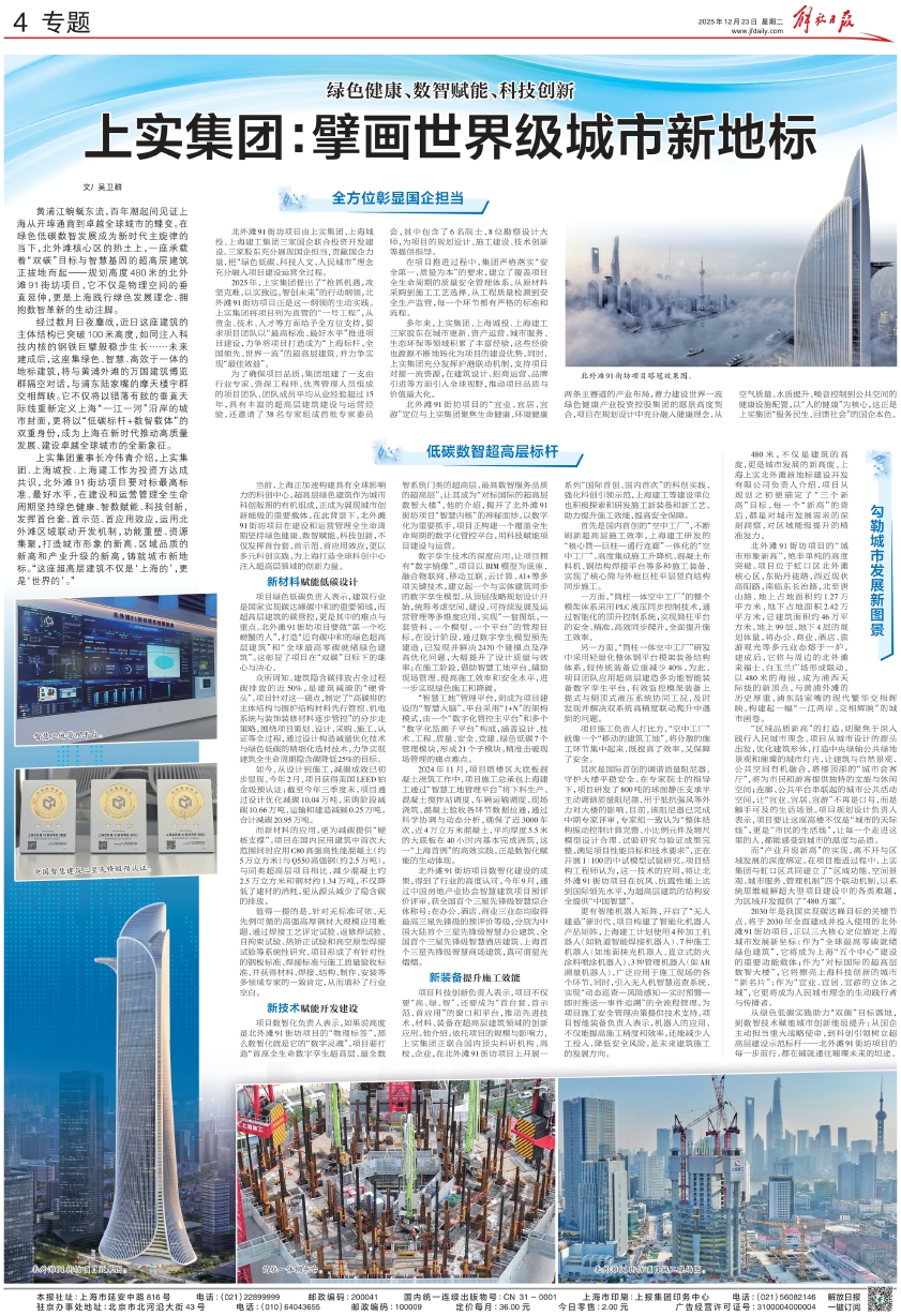 项目科技创新负责人表示,项目不仅要“高、绿、智”,还要成为“首台套、首示范、首应用”的窗口和平台,推动先进技术、材料、装备在超高层建筑领域的创新应用。他介绍,依托项目的规模与影响力,上实集团正联合国内顶尖科研机构、高校、企业,在北外滩91街坊项目上开展一系列“国际首创、国内首次”的科创实践,强化科创引领示范,上海建工等建设单位也积极探索和研发施工新装备和新工艺,助力提升施工效能,提高安全保障。