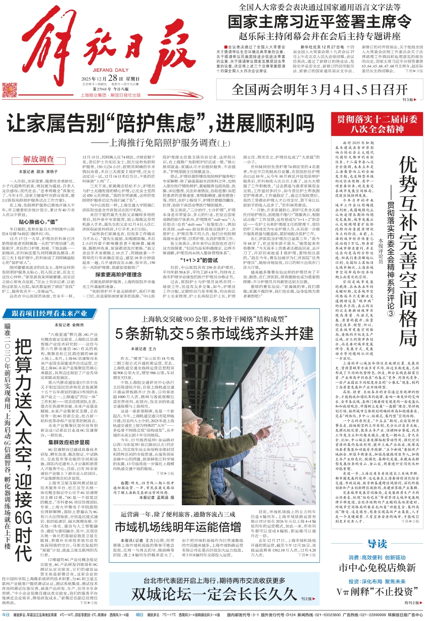 今年,13号线西延伸(金运路站以西)与东延伸(张江路站以北)同步发力,均实现车站主体结构全部封顶和盾构区间的全线贯通。从服务国家会展中心的西翼,到深耕张江科学城的东翼,13号线将进一步强化上海横向轨道交通干线的能级。下转 3版