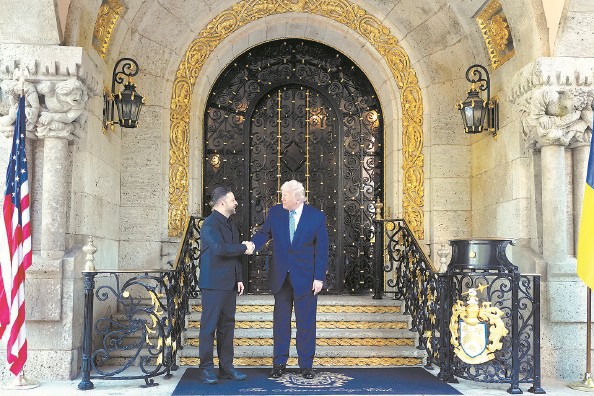特朗普在海湖庄园门口迎接泽连斯基 新华社 发