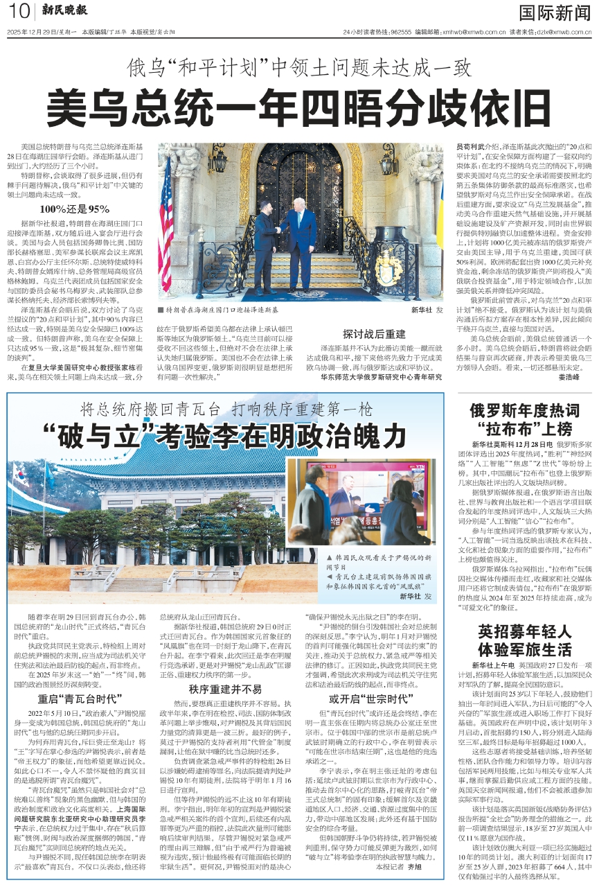 华东师范大学俄罗斯研究中心青年研究员苟利武介绍,泽连斯基此次抛出的“20点和平计划”,在安全保障方面构建了一套双向约束体系:在北约不接纳乌克兰的情况下,明确要求美国对乌克兰的安全承诺需要按照北约第五条集体防御条款的最高标准落实,也希望俄罗斯对乌克兰作出安全保障承诺。在战后重建方面,要求设立“乌克兰发展基金”,推动美乌合作重建天然气基础设施,并开展基础设施建设及矿产资源开发,同时由世界银行提供特别融资以加速整体进程。资金安排上,计划将1000亿美元被冻结的俄罗斯资产交由美国主导,用于乌克兰重建,美国可获50%利润。欧洲将配套出资1000亿美元补充资金池,剩余冻结的俄罗斯资产则将投入“美俄联合投资基金”,用于特定领域合作,以加强美俄关系并降低冲突风险。