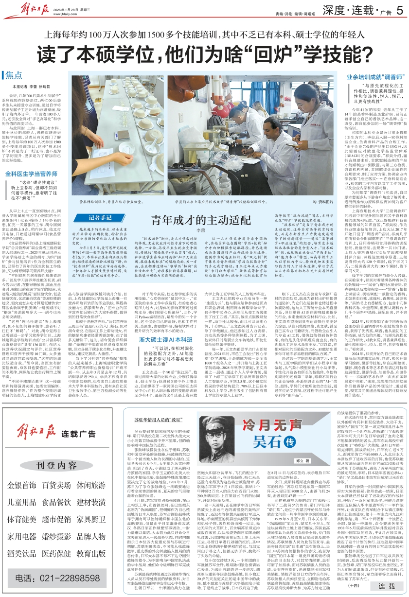 上海每年约100万人次参加1500多个技能培训,其中不乏已有本科、硕士学位的年轻人