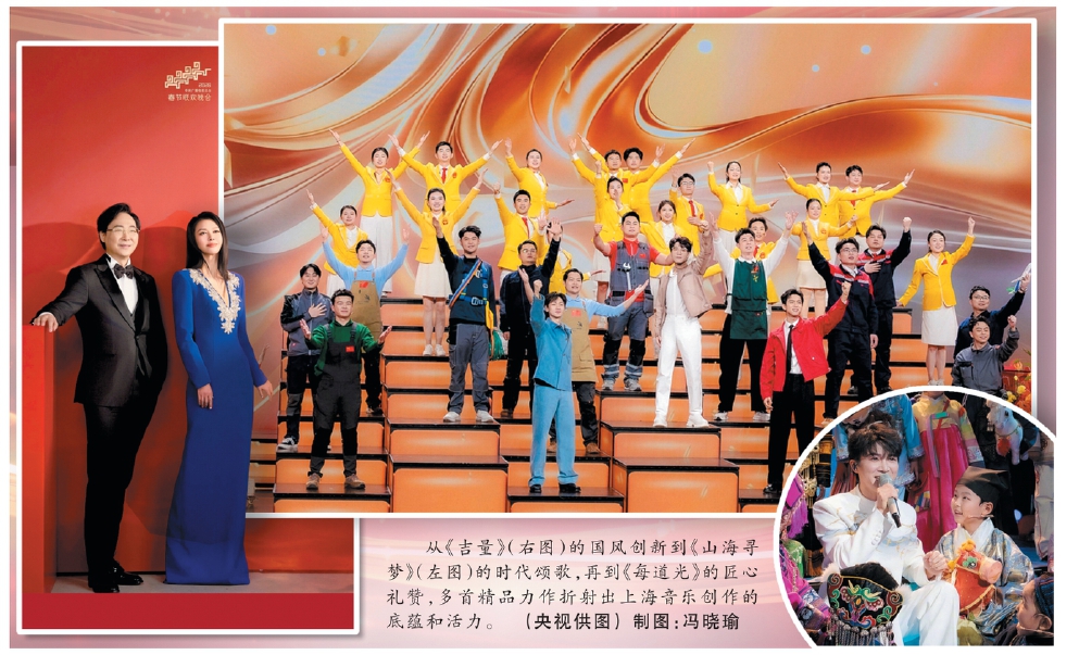 更值得一提的是,在今年春晚音乐单元中,融汇多元创作、真挚表达的“上海声音”破屏而出:从《吉量》的国风创新到《山海寻梦》的时代颂歌,再到《每道光》的匠心礼赞,多首精品力作折射出上海音乐创作的底蕴和活力。