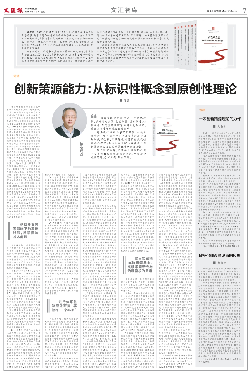 对其进行体系化学理化研究,必须加强对新一轮科技革命和产业变革的趋势研判和规律认识,必须深化对国家重大战略需求的理解,必须全面了解上海在提升创新策源能力方面的政策设计和制度安排。