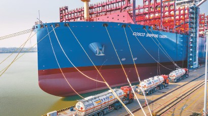 大型甲醇双燃料集装箱船“中远海运洋浦”轮在沪交付