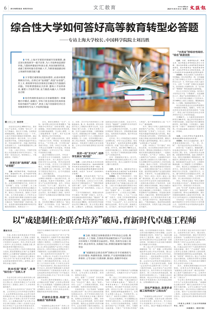 动态优化全校近40%的专业,紧密对应产业需求;对课程“挤水分”,深化产教融合,强化实习实践;全面推进AI赋能课程,重塑育人生态……今年,上海大学紧密对接城市发展需要,通过深化教育教学一揽子改革,为人才培养创造更好环境,力图培养基础学科拔尖者、科技创新领军者、卓越工程师和复合型创新人才,为教育强国建设和上海城市发展贡献力量。
