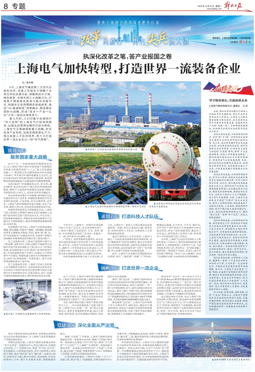 站在新的历史起点,上海电气正以蓬勃的创新活力和坚定的改革步伐,在服务国家战略的征程上奋勇前行。这份以改革为楫、以实干为舟的“电气答卷”,不仅镌刻着国企勇担使命的赤子之心,更彰显了中国制造向中国创造跨越的坚定自信。上海电气必将以更加昂扬的姿态,在全球高端装备制造的星辰大海中破浪前行,为强国建设谱写新的时代华章。