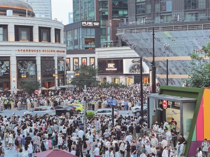 晚上9时后,静安茂名北路限时步行街依旧热闹。最近的每个周末,静安在此推出“微醺夜巷”主题IP,营造特色消费场景。作为“商业大区”,“十四五”以来,静安大力发展首发经济、新型消费,集聚最潮的品牌、提供最新的体验、打造最优的环境,区域消费活力持续迸发。