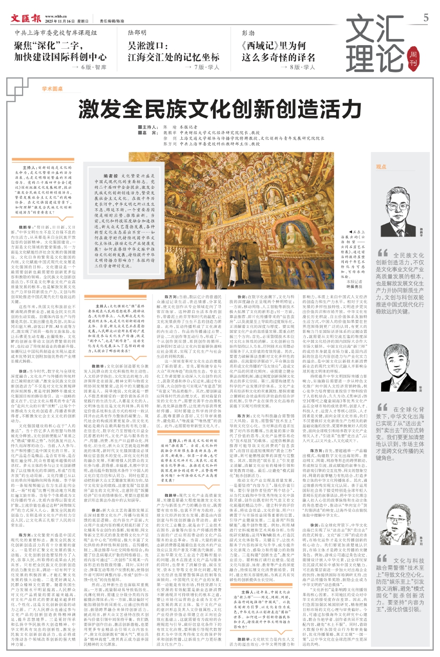徐剑:当今时代,数字化与全球化深度融合,文化生产与传播的传统样态已被彻底打破。“激发全民族文化创新创造活力”不仅是对文化发展规律的深刻洞察,更是对到2035年建成文化强国目标的路径指引。这一战略的意义在于,它让文化从精英的专业“高台”走向大众的日常“田野”,让每个个体都成为文化的创造者、传播者和获得者,不断激发社会主义文化的创新动力。