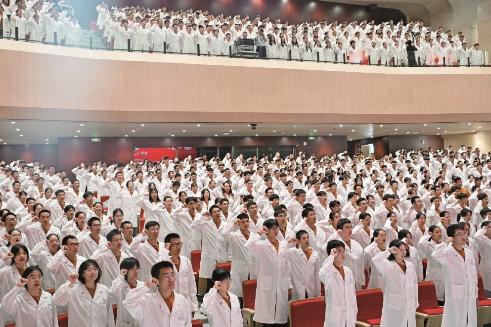 二是以立德树人为使命,坚持医教协同战略,构建卓越医学创新人才培养体系。以新医科统领医学教育创新发展,率先推出“医+X”和“X+医”医学人才培养改革,开展与国际接轨的器官系统整合课程,开展遍及22个国家和地区的55个游学项目,实施“致远荣誉计划”博士生培养改革;作为我国唯一代表接受世界医学教育联合会(WFME)全程观摩下的专业认证,助力中国临床医学专业认证机构无条件通过认定,彰显交医的担当与责任,将医教协同贯穿人才培养全过程。