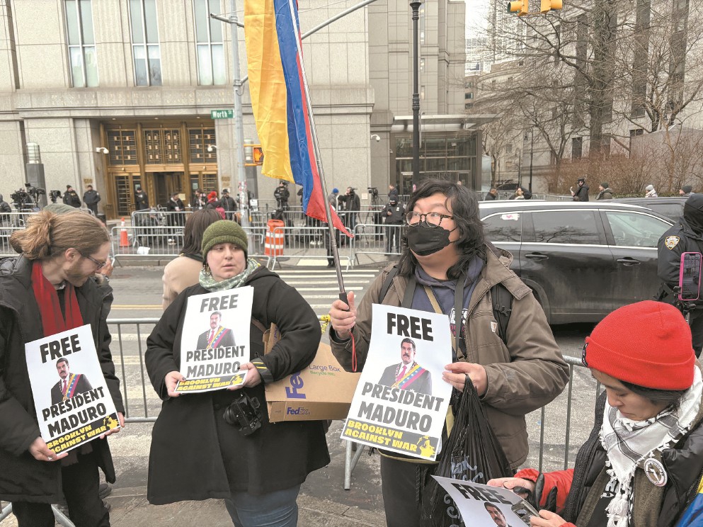 遭美国强行控制的委内瑞拉总统马杜罗夫妇当地时间5日中午在美国纽约南区联邦地区法院首次出庭,拒绝美方所谓“犯罪”指控。在“庭审”中,马杜罗说自己“无罪”“将获得自由”,并表示自己“仍然是委内瑞拉总统”。法院外,抗议者聚集要求释放马杜罗,抗议美国军事干涉委内瑞拉。