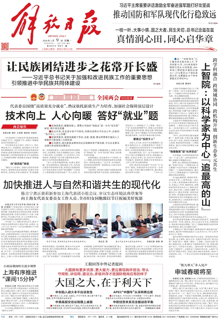 记者从上海市教委了解到,上海已有序推进“课间15分钟”,自本学期起到2026学年秋季学期,全市高中、初中、小学的课间时长逐步有序调整到15分钟。