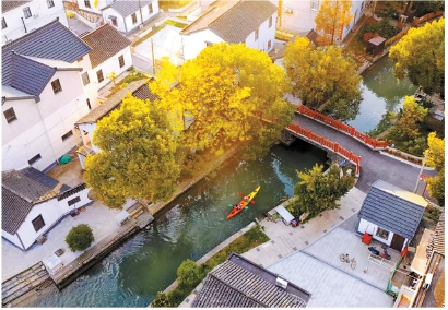 “以前老一辈人串门,摇的是水泥船、木头船;现在年轻人串门,划的是皮划艇。”倪芳芳笑着说。村里9条河道全部连通,早上起床后,新村民划着船到金泽镇上吃早饭,成为村内一景。