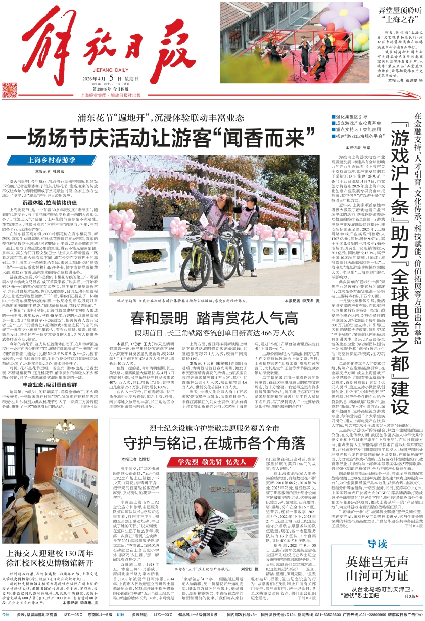 上海方面,当日同样刷新铁路上海站下辖各站清明假期客流最高峰,共发送旅客约76.1万人次,较去年同期增长11%。