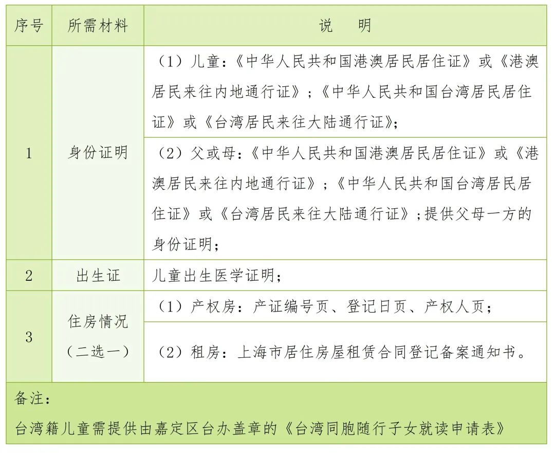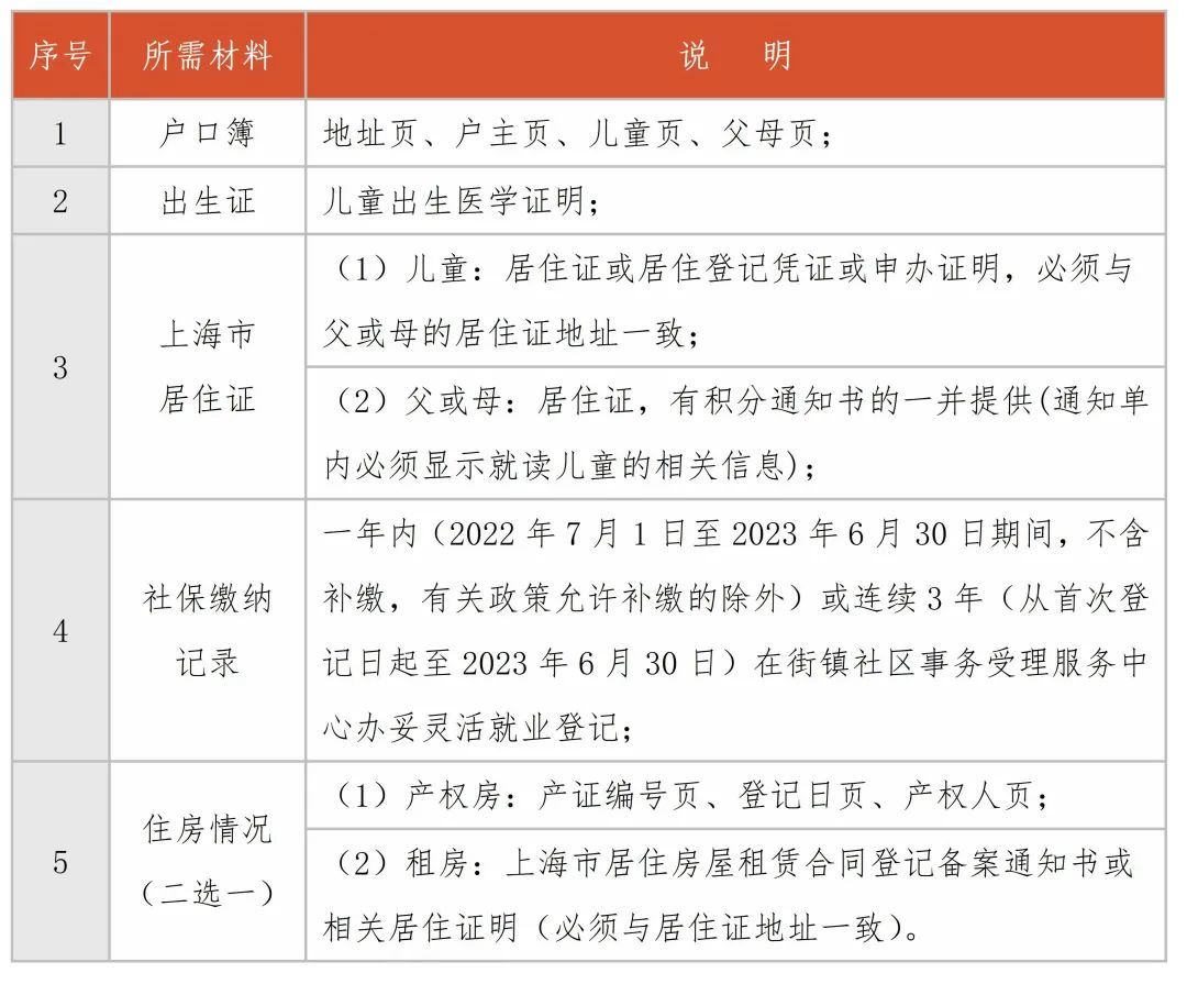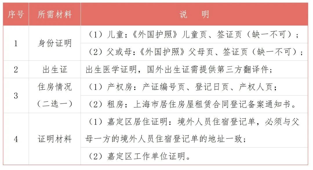 (四)2023年嘉定区幼升小招生入学材料清单(如下)