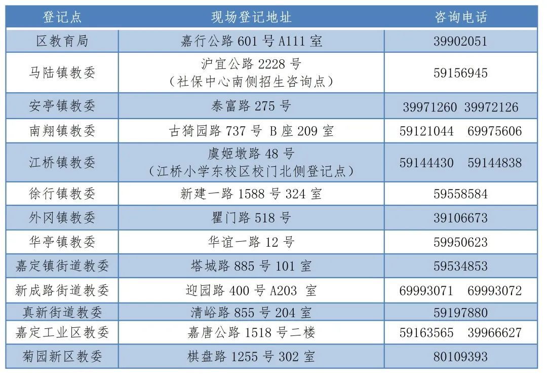 为便于家长咨询和现场登记,2023年嘉定区义务教育阶段幼升小信息登记在提供线上服务的基础上,开设线下登记点。如需现场办理的,请至区教育局及各街镇指定登记点。