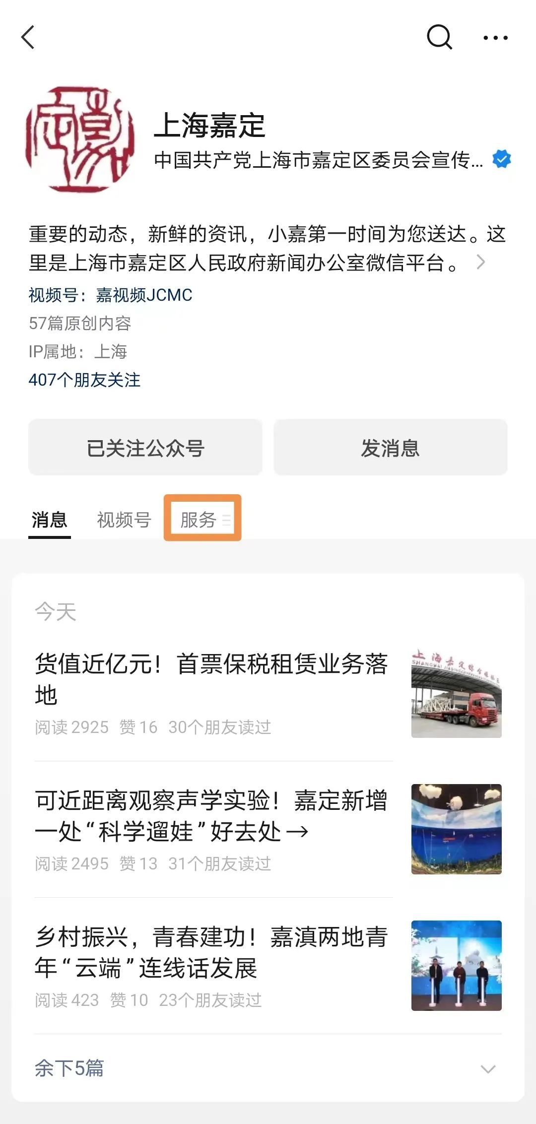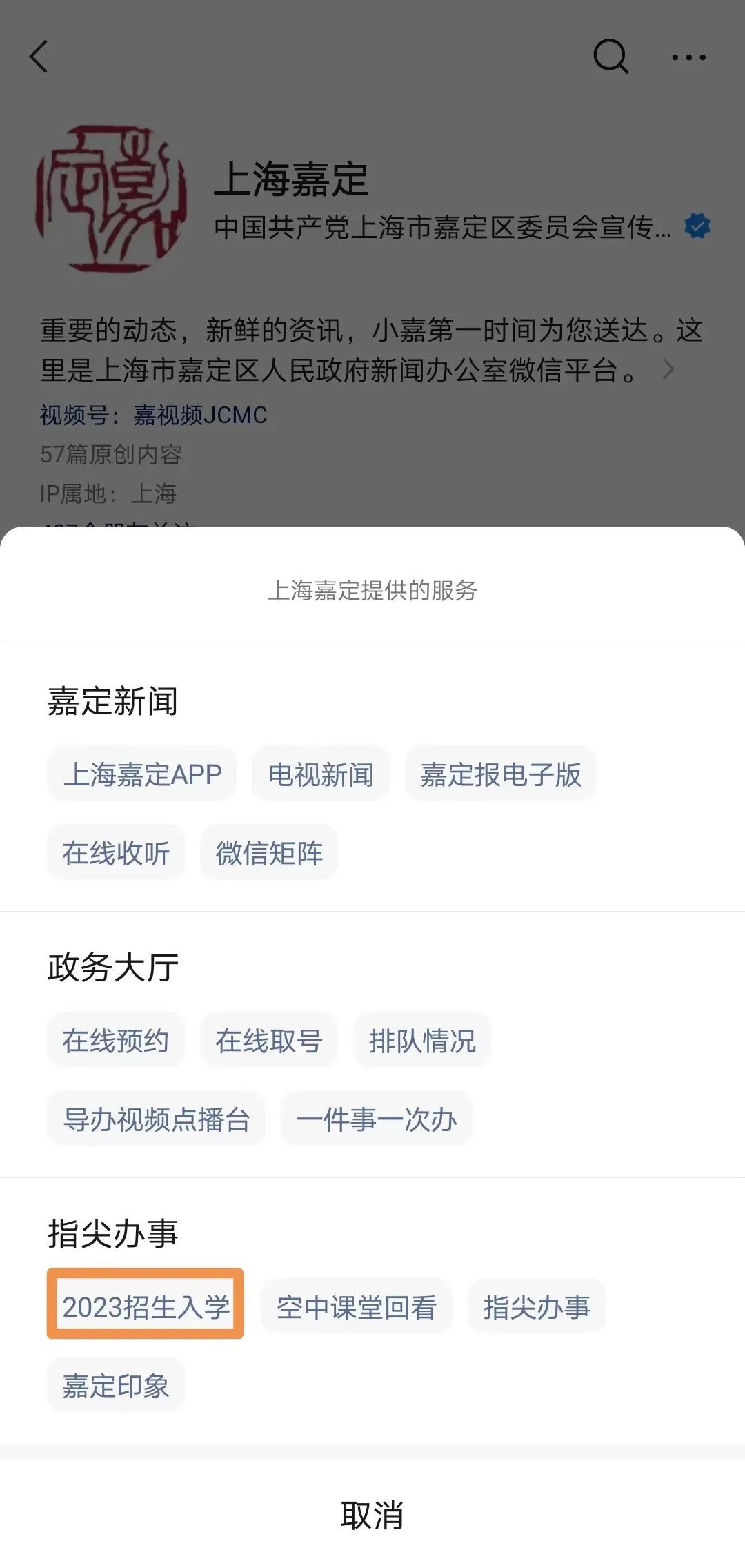 可关注“上海嘉定”微信公众号查询