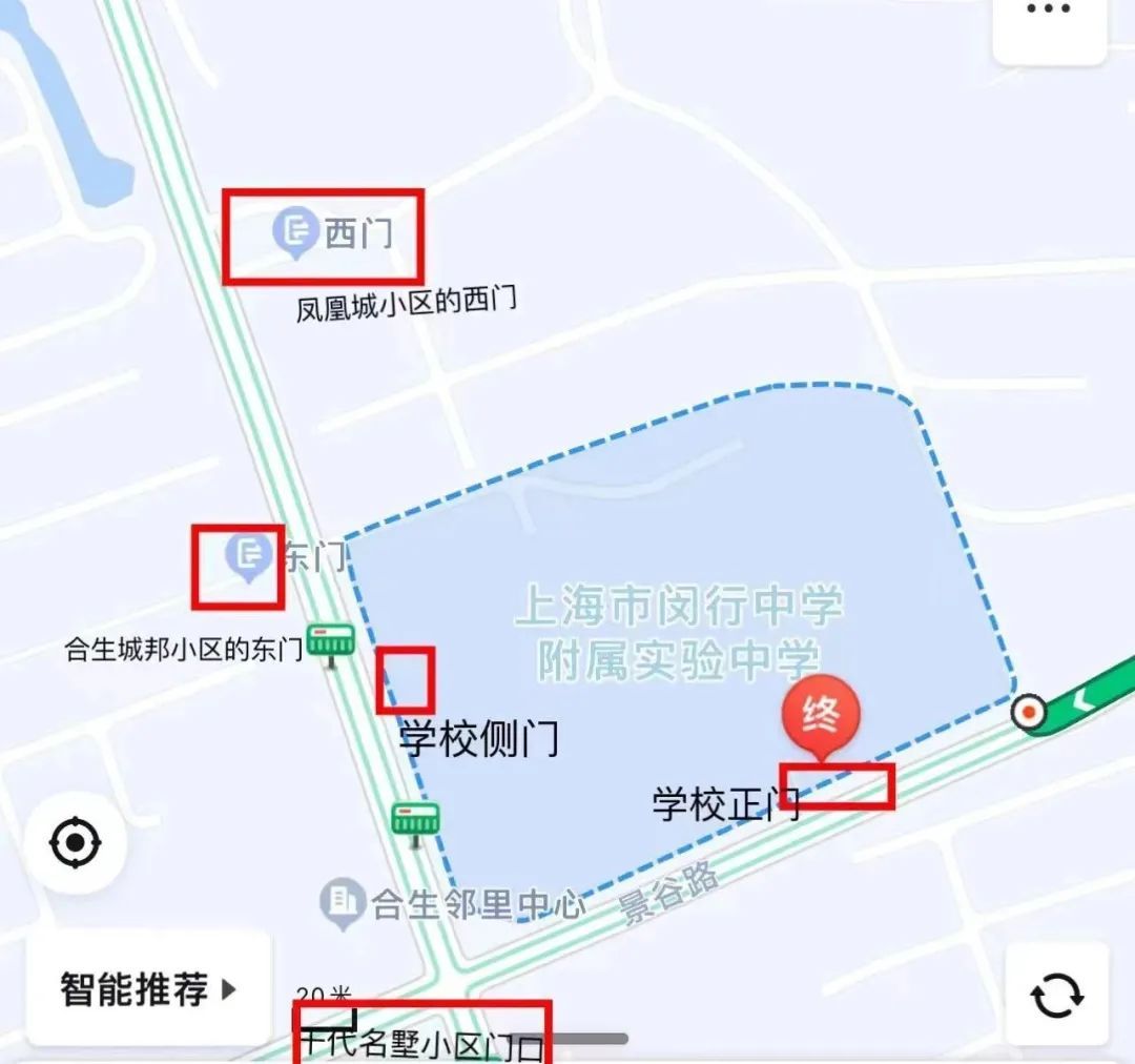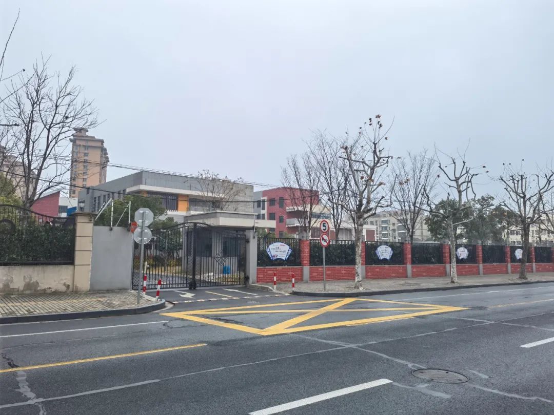 闵行中学附属实验学校安宁路侧门口,没有交通警示标志,车辆经过学校门口速度过快……