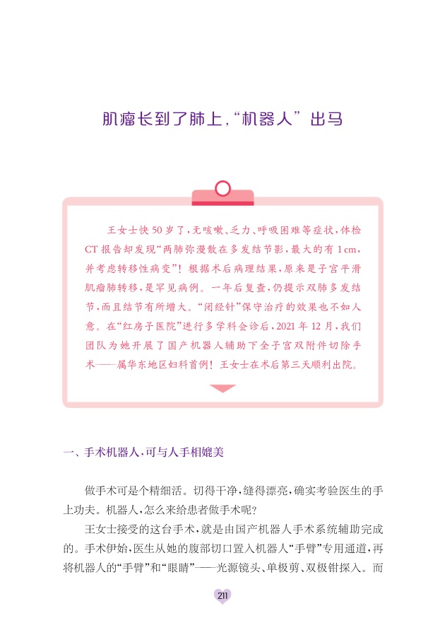 书中的每个开篇故事皆来自红房子专家临床工作中遇到的真实案例,她们的人生结局不尽相同。面对各种结果,感受着她们的感受,希望这本书能帮助更多女性及家庭解除对妇科肿瘤的疑惑、促进大众对生殖健康的理解以及知信行改变,让更多女性洋溢生命活力,实现对美好生活的希冀与无限渴望。