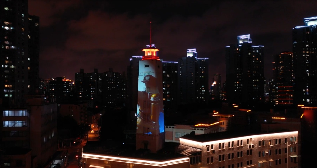 来到江宁路桥,最显眼的建筑肯定是救火会消防塔。灯光投影让塔身染上绮丽的色彩,边跑边“听”那塔身上升腾起的泡泡幻影,述说着消防员的最美背影,更加增添了对生命的喝彩,“哪有什么岁月静好,不过是有人替你负重前行!”