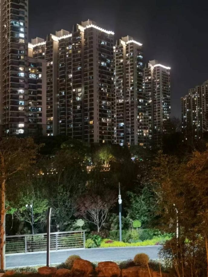 这时,你会发现绿丛掩映的中远两湾城楼宇也悄悄换了模样,原本杂乱的天际线已经变得柔和、规整、明亮。考考眼力数一数,哪扇窗户是你的家?