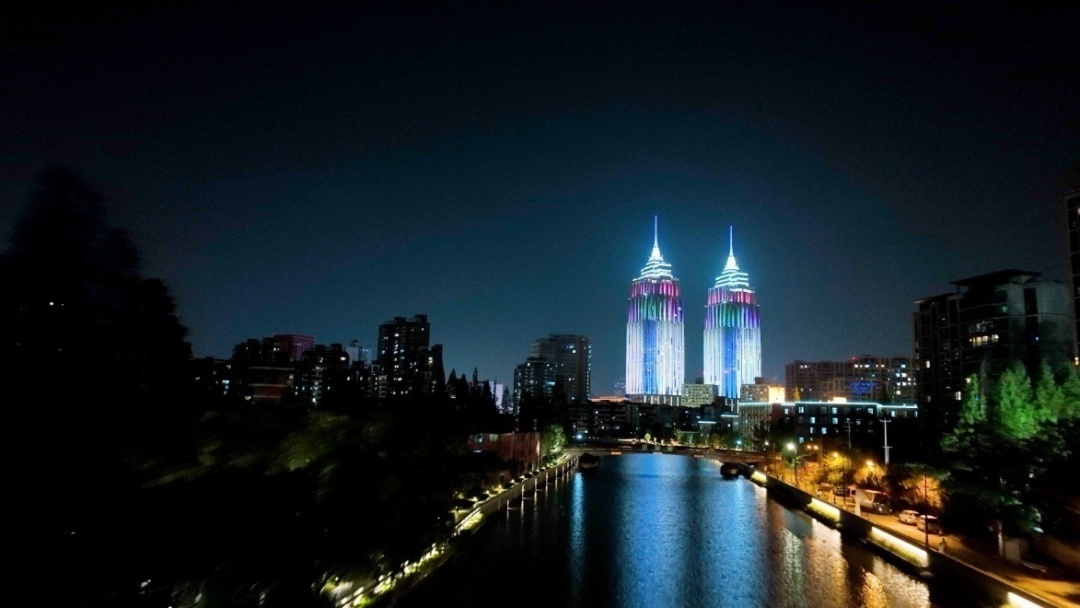 再向西,遥望着环球港双子塔璀璨的灯火外衣,迎着倒映在苏河上的塔身掠影,这一段路线最长,考验你意志力的时候到了!