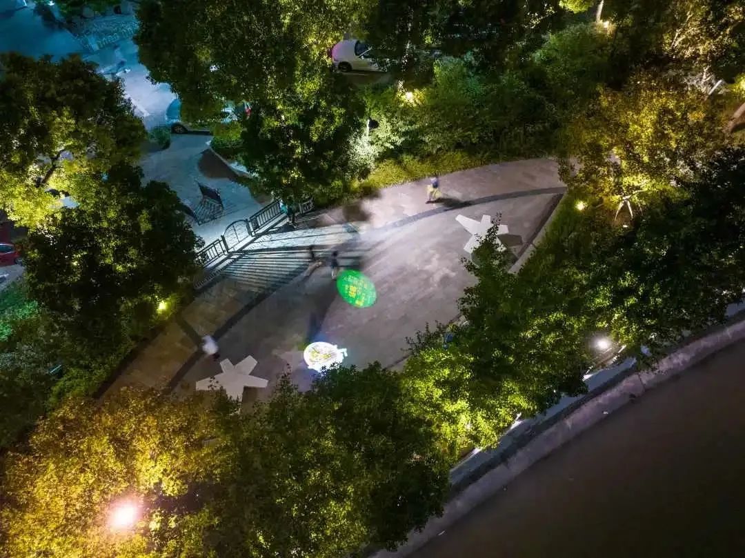 来到宝成桥,“老唱片广场”就在脚下,数个投影灯将上海的“老唱片”投射在地面,各色唱片在地面上缓缓旋转播放,对应的老上海唱腔缓缓响起,加入人群,一起共舞吧!