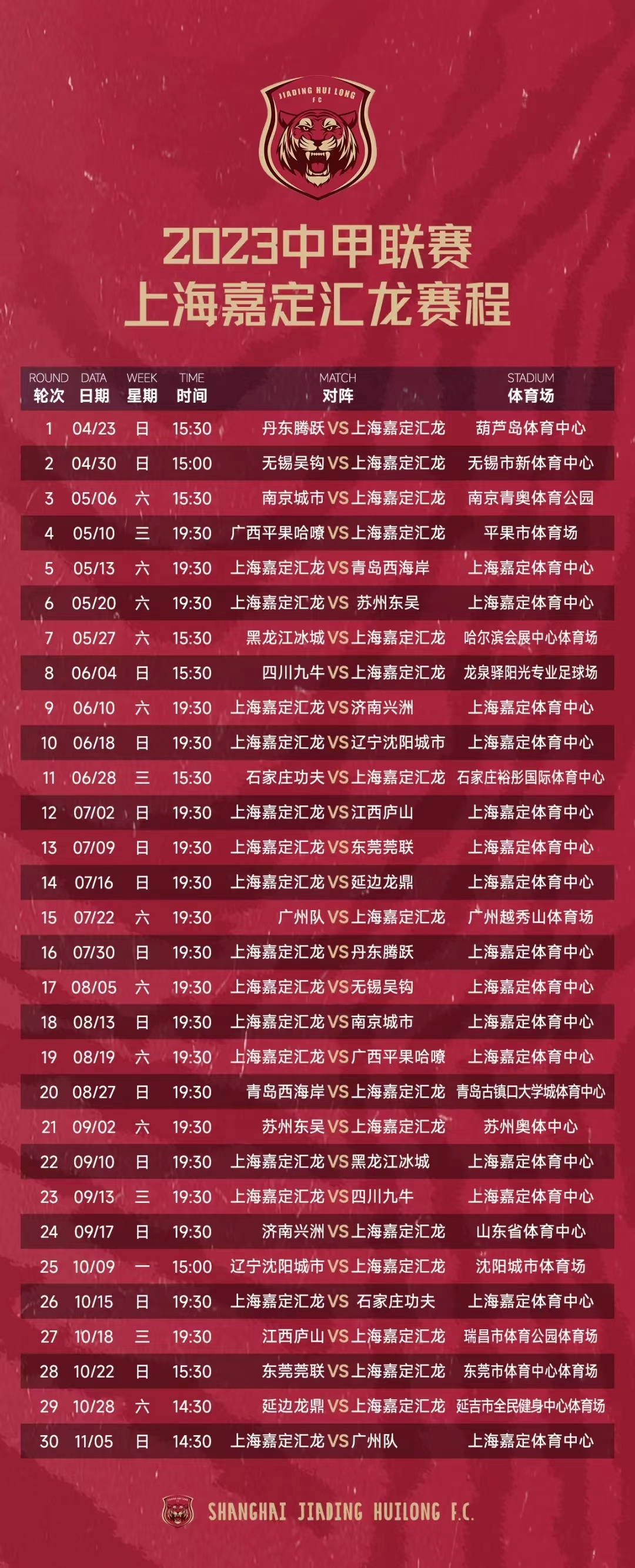 根据赛程安排,球队将在开局阶段迎来连续四场客场比赛。李毅男表示:“连续四轮客战会给我们带来不小的挑战,我们会尽力克服,希望新赛季能有一个好的开始。”四场比赛后,上海嘉定汇龙将于5月13日回到嘉定主场,迎来球队历史上首场中甲主场比赛。