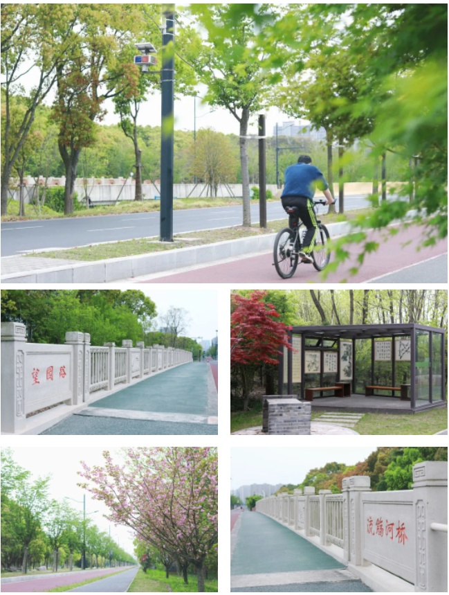 骑累了,可以在望园路上展现了书法艺术的墨妍亭慢慢“充电”,感受这条有温度、可阅读的特色景观道。