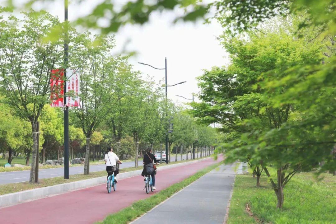 沿途骑行时,入目满是青青嫩绿的草坪,累了在此歇息片刻,赏花、躺草坪,感受新城的蝶变。