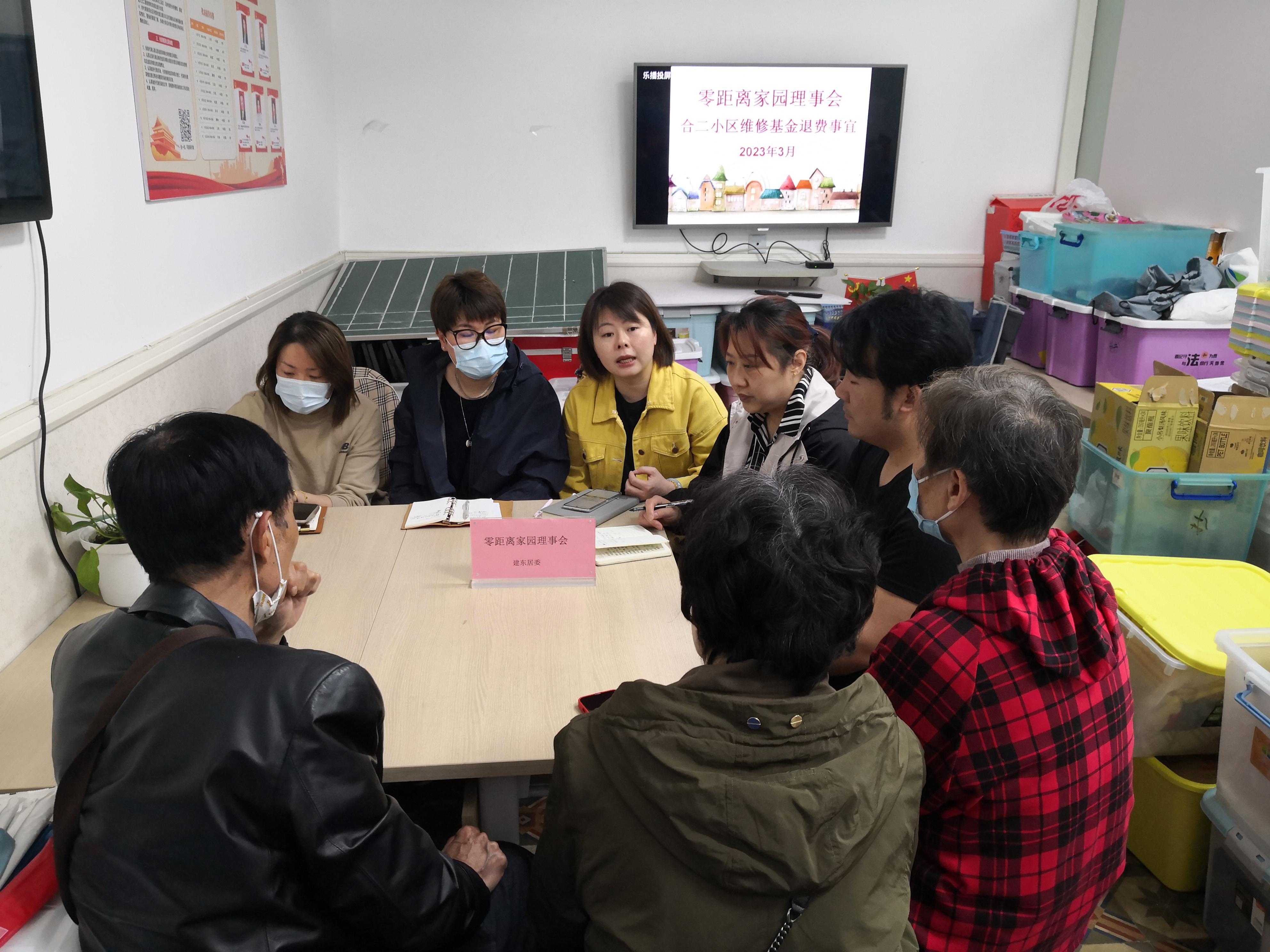 居委干部首先咨询了街道业委会指导中心,了解到《住宅专项维修资金管理办法》第二十九条规定:房屋灭失的,业主缴纳的住宅专项维修资金的剩余部分是可以返还业主的。于是,建东居委主动为居民搭建平台,召开零距离家园理事会,积极协调街道房管办、街道业委会指导中心及建设银行卢湾支行等部门与居民进行沟通交流。