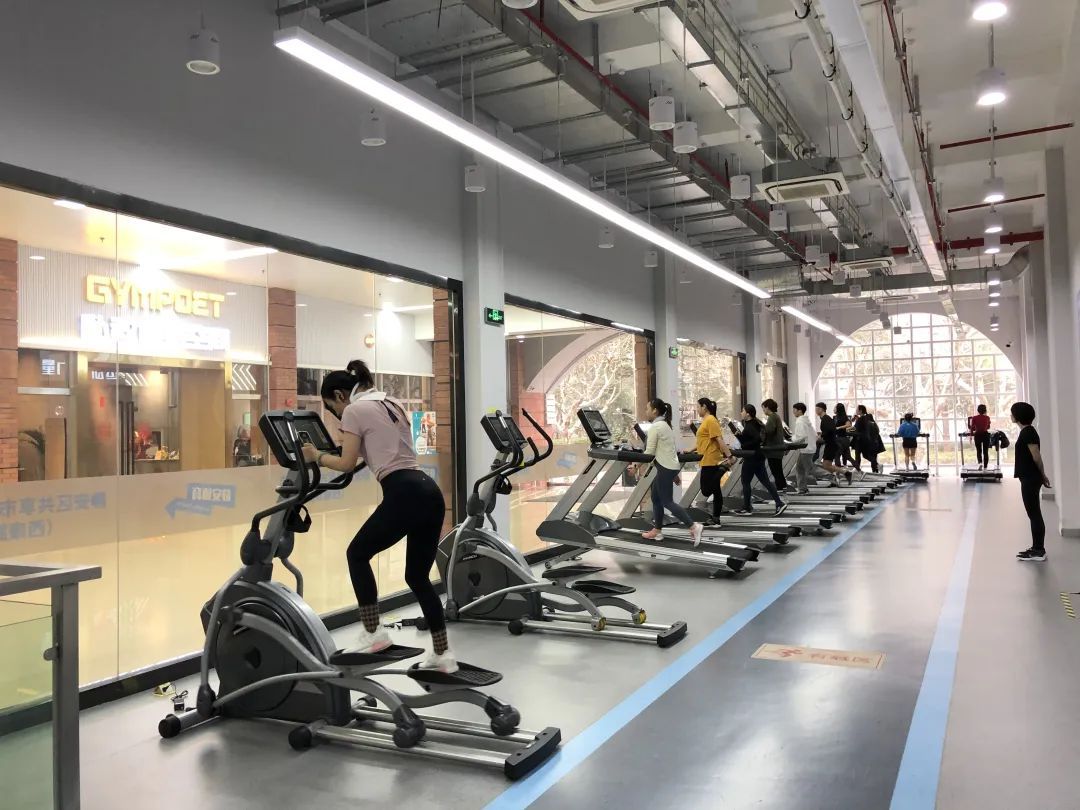 场馆内分为有氧训练区、力量训练区和动感单车区;跑步机、椭圆机、划船器、动感单车等有氧器械种类多样。大宁集团通过市场化协作,以“运动+数字技术”的管理模式,线上智能化的远程管理和线下集约化现场管理,使园区白领职工健身更便捷、公益、安全、有序,生活更健康。