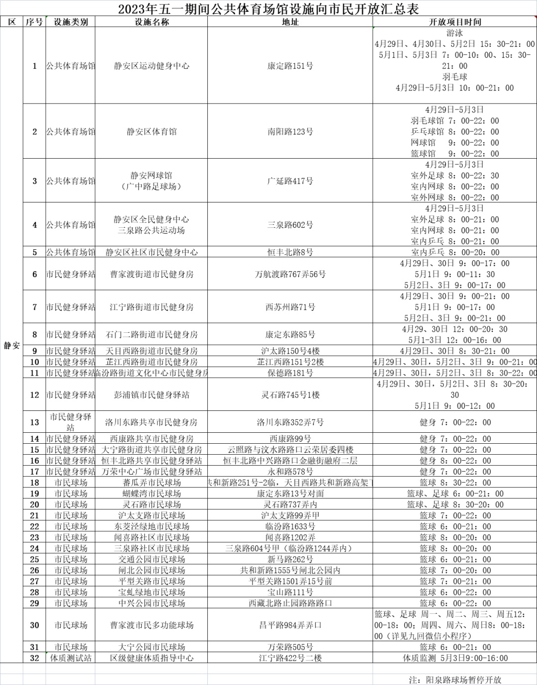 记者从区体育局了解到,为进一步满足广大市民群众的健身锻炼需求,五一假期期间(4月29日—5月3日),32家区属体育场馆向市民开放。