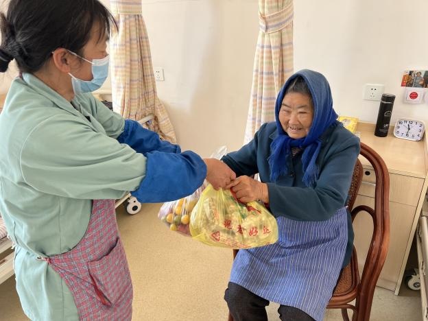 此外,敬老院还精心为老人们准备了节日水果与糕点。
