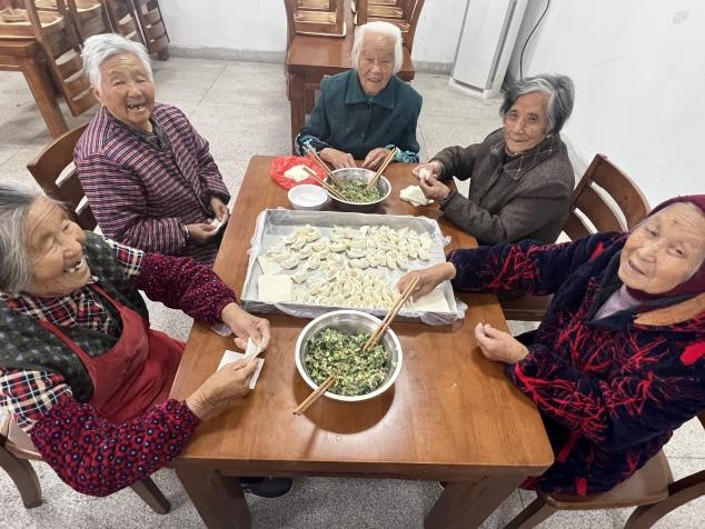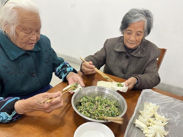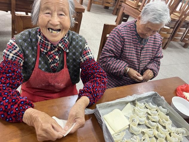 为让老年人更好地过一个开心、快乐的劳动节,敬老院为其准备了易消化的食物——馄饨,并邀请大家一起参与制作,回味劳动的乐趣。