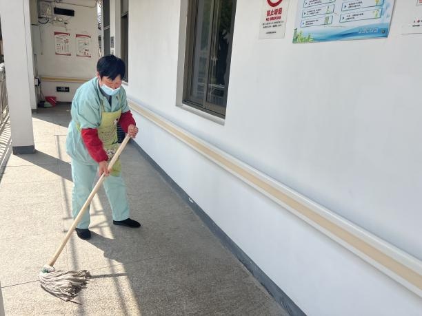敬老院工作人员每日为老年人打扫房间与活动区域,适时晾晒被褥、擦拭健身器械等,营造舒心的居住环境。