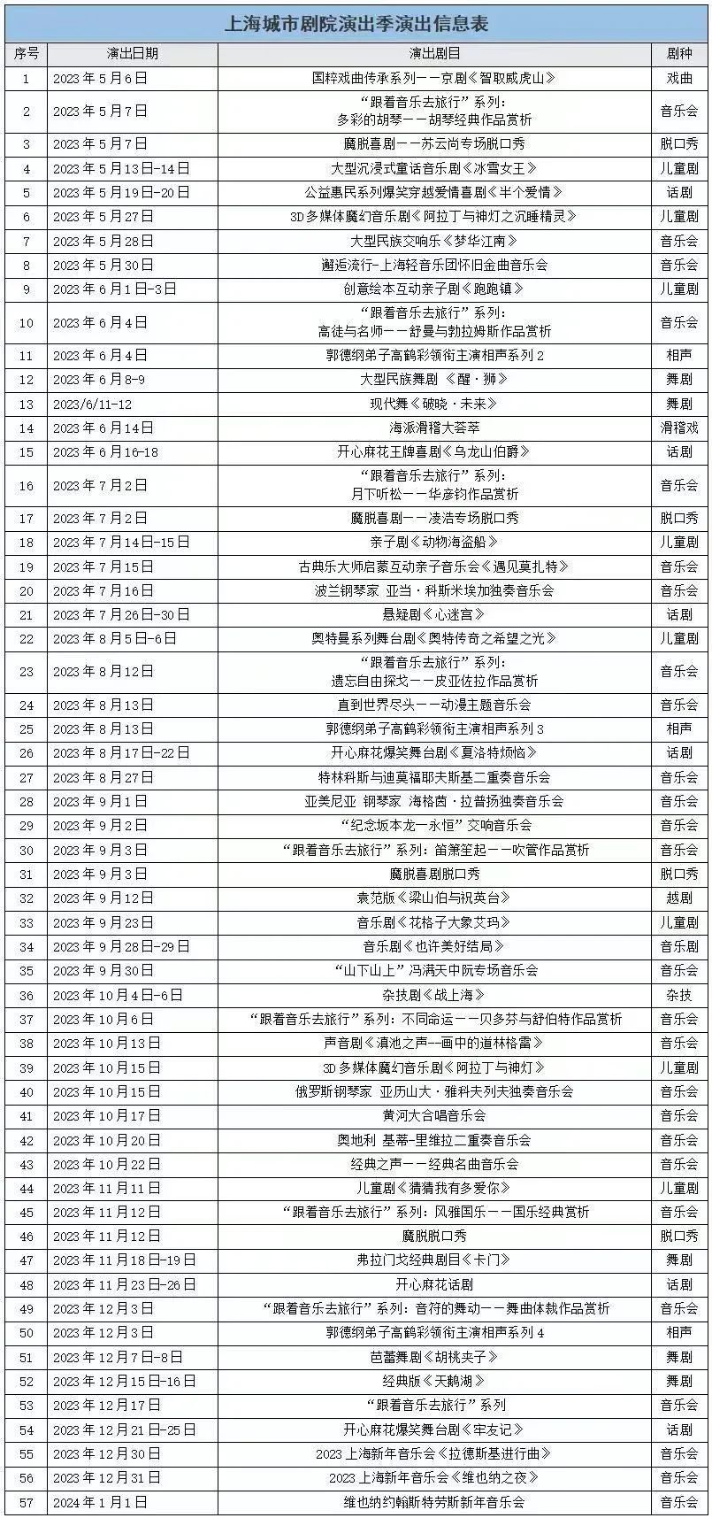 通通都在上海城市剧院安排上了!
