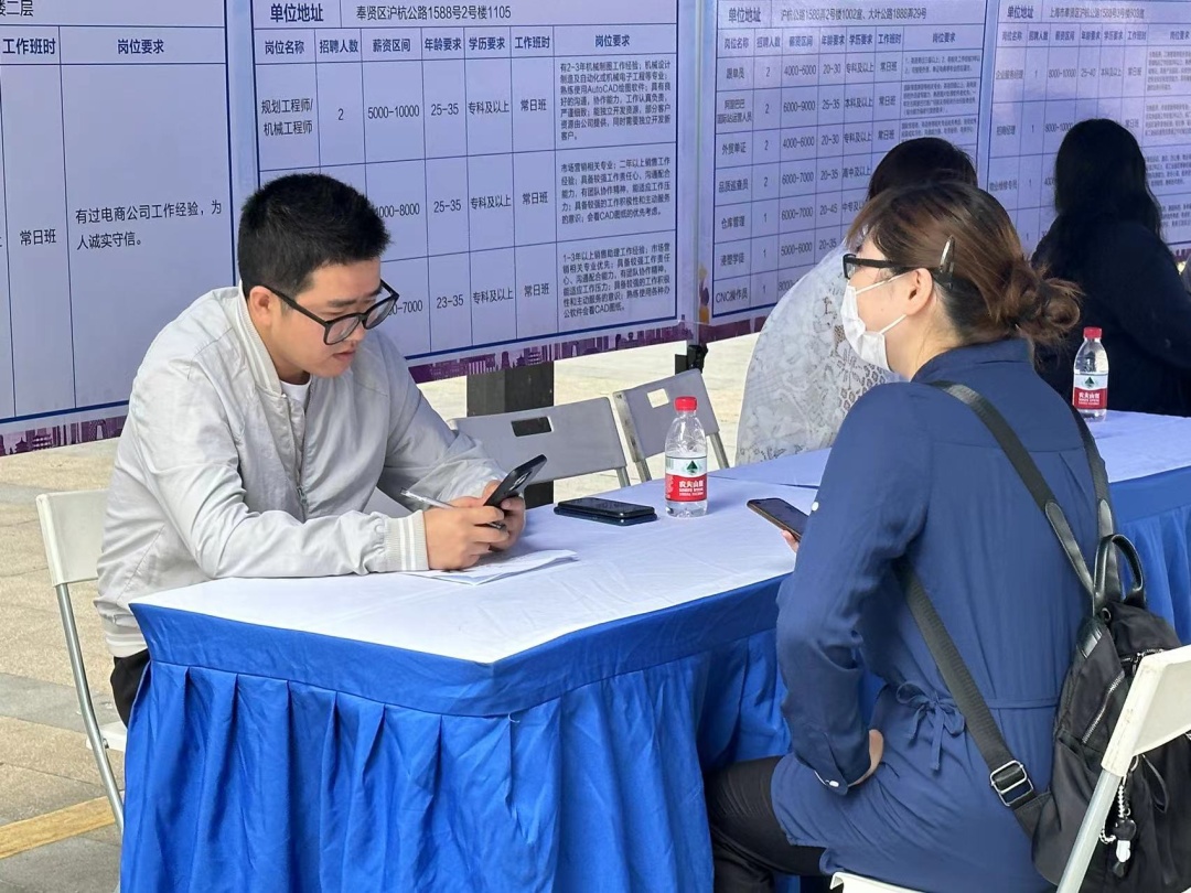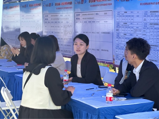 求职者们的热情点燃了现场,很多人员都是即将毕业,还未就业的高校毕业生,他们穿梭在各个招聘摊位前咨询岗位信息、投递简历、进行求职登记。企业的招聘人员热情地向求职者介绍企业性质、薪资待遇以及福利等,现场对有意向的求职者进行了解、进行初步的面试。